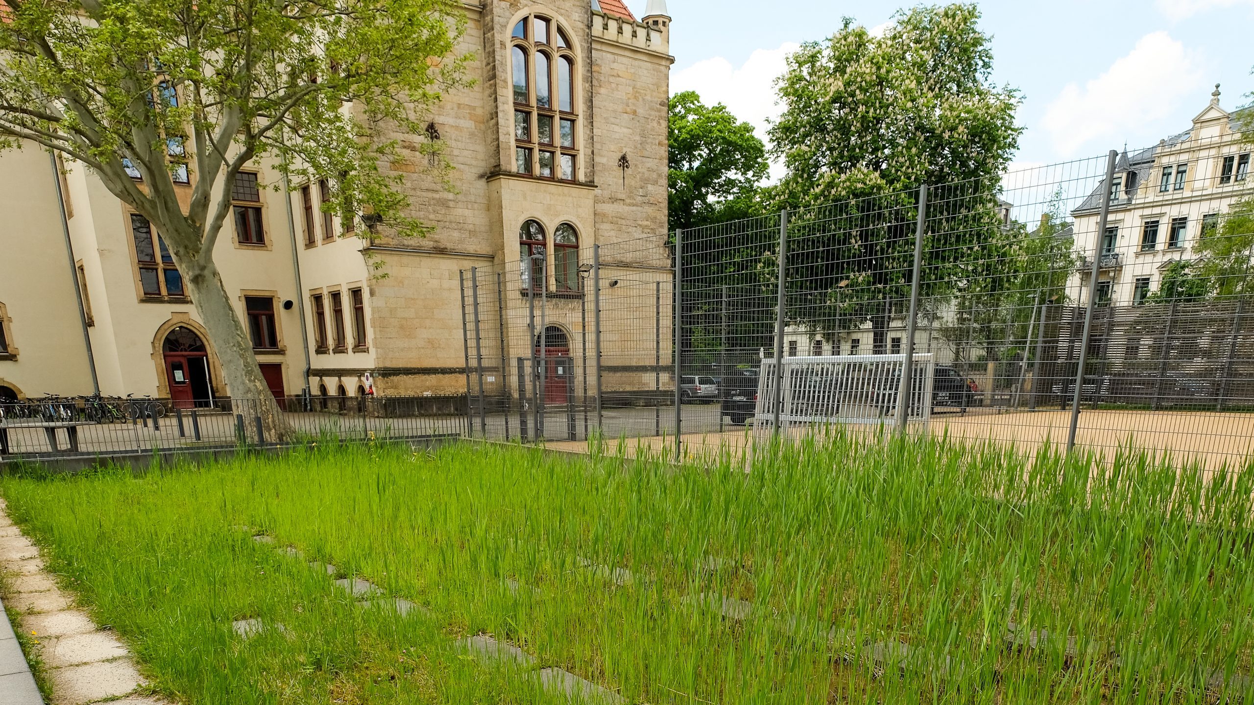 Unsere Schule verfügt über einen großen grünen Schulhof, auf dem die Schüler ihre Hofpausen verbringen. An drei Tagen in der Woche unterbreitet die Schulsozialarbeiterin der Schule Spielangebote für die jüngeren Schüler.